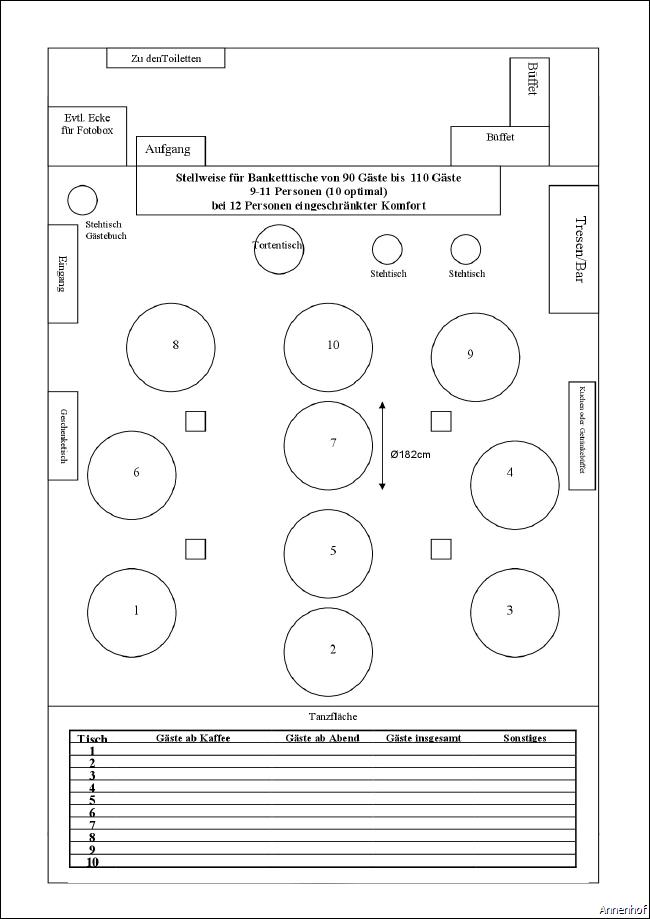 Für Banketttische benötigen Sie einen Plan, wie Sie die Gäste platzieren.